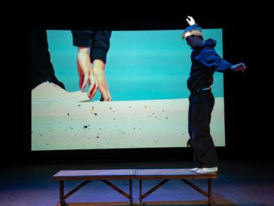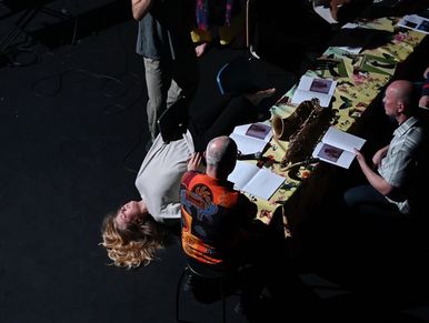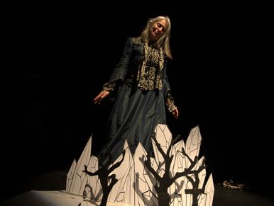 Knocked unconscious after a fall. a theatre technician dreams of an island with perpetual sun, a pop-up grimoire, and a dark father figure with terrible intent. Surreal, gothic metatheatre adapted by Michelle Penn from her collection Paper Crusade (Arachne Press) itself a reimagining of Shakespeare's The Tempest. A collaboration between Theatre Voliere, Michelle Penn, Eric Domenicone (La Soupe puppet company) and dancer-choreographers Eloise Frey and Jan Wood.