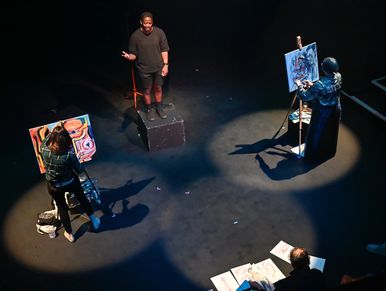with language and improvisation as his poetry is captured on canvas. Performed in
